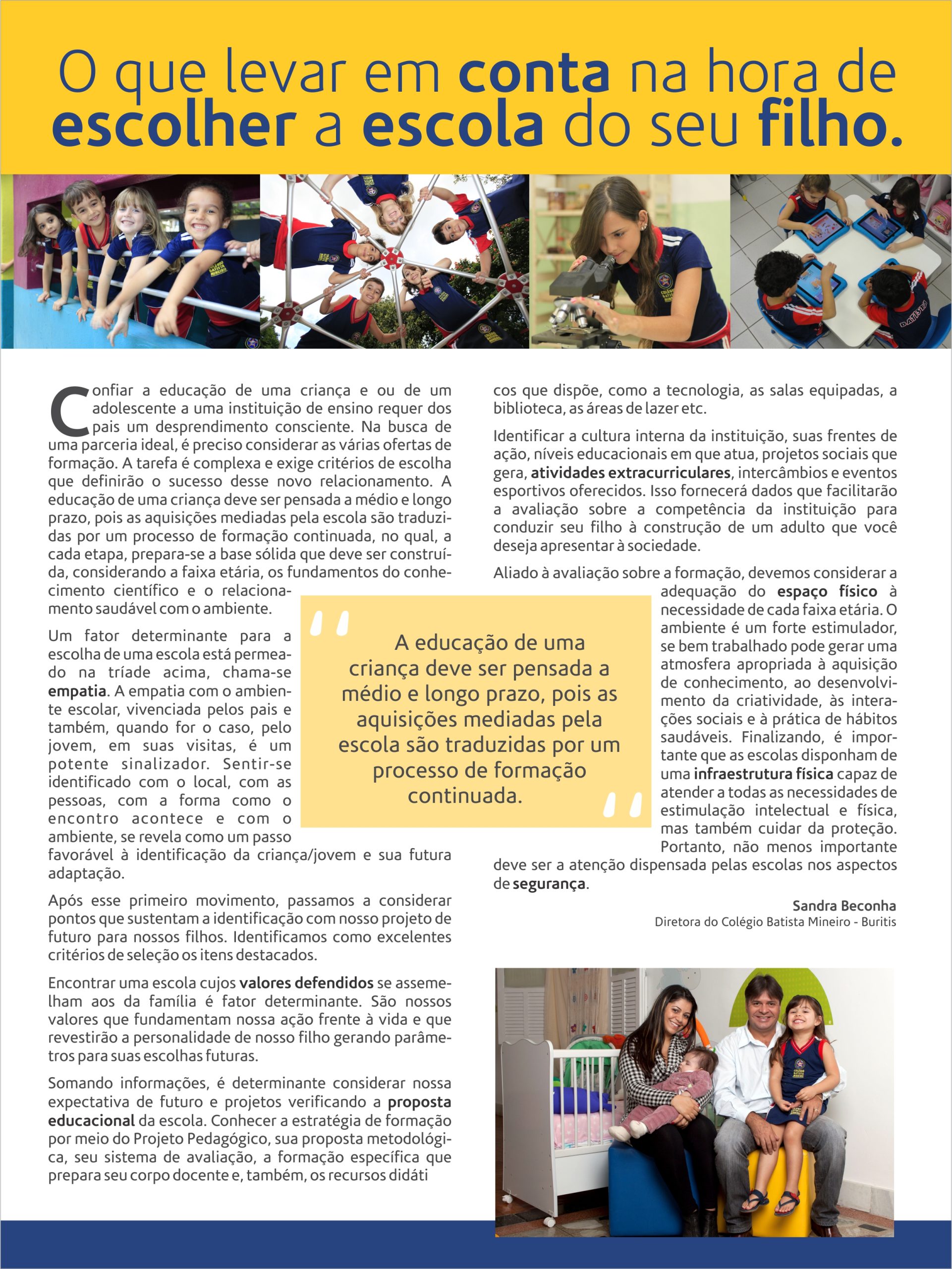 O que levar em conta na hora de escolher a escola do seu filho? (revista “Planeta Kids”)