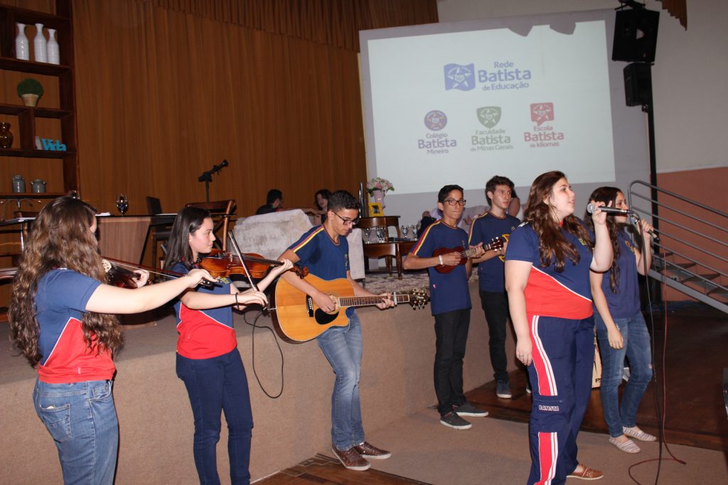 A Rede Batista de Educação comemorou o Dia do Professor (15 de outubro) em grande estilo, pois o Batista é uma escola diferenciada e que valoriza a figura do mestre. Na Unidade BH Floresta, a comemoração aconteceu na noite do dia 26 de outubro, com jantar e uma programação variada. Representando os alunos da Instituição, os estudantes do 9º ano do Ensino Fundamental II e da 1ª série do Ensino Médio homenagearam e reconheceram a importância do trabalho do professor apresentando a canção “Dia especial”, de Thiago Iorc, além de um cordel (gênero textual estudado no ensino regular). Houve ainda uma reflexão especial do capelão-geral da Rede Batista de Educação, Pr. Rubens Eduardo Cordeiro.