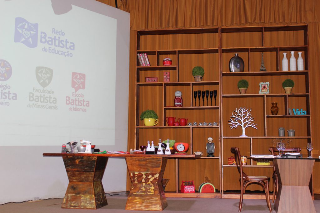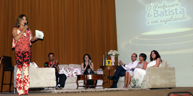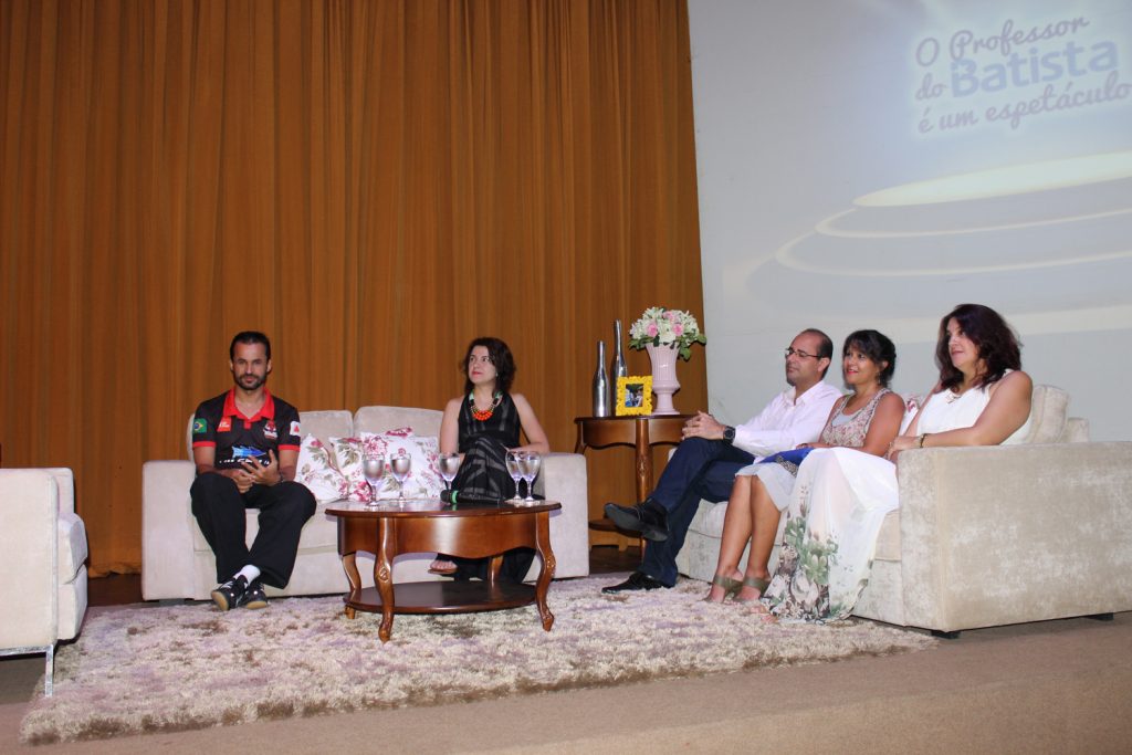 O palco do auditório das Séries Finais transformou-se em um cenário de televisão, com detalhes surpreendentes, uma decoração inovadora, criativa e muito dinâmica, para receber o programa de TV ‘O professor do Batista é um espetáculo’, conduzido por Márcia Resende, apresentadora do programa ‘Sempre Feliz’ da Rede Super.