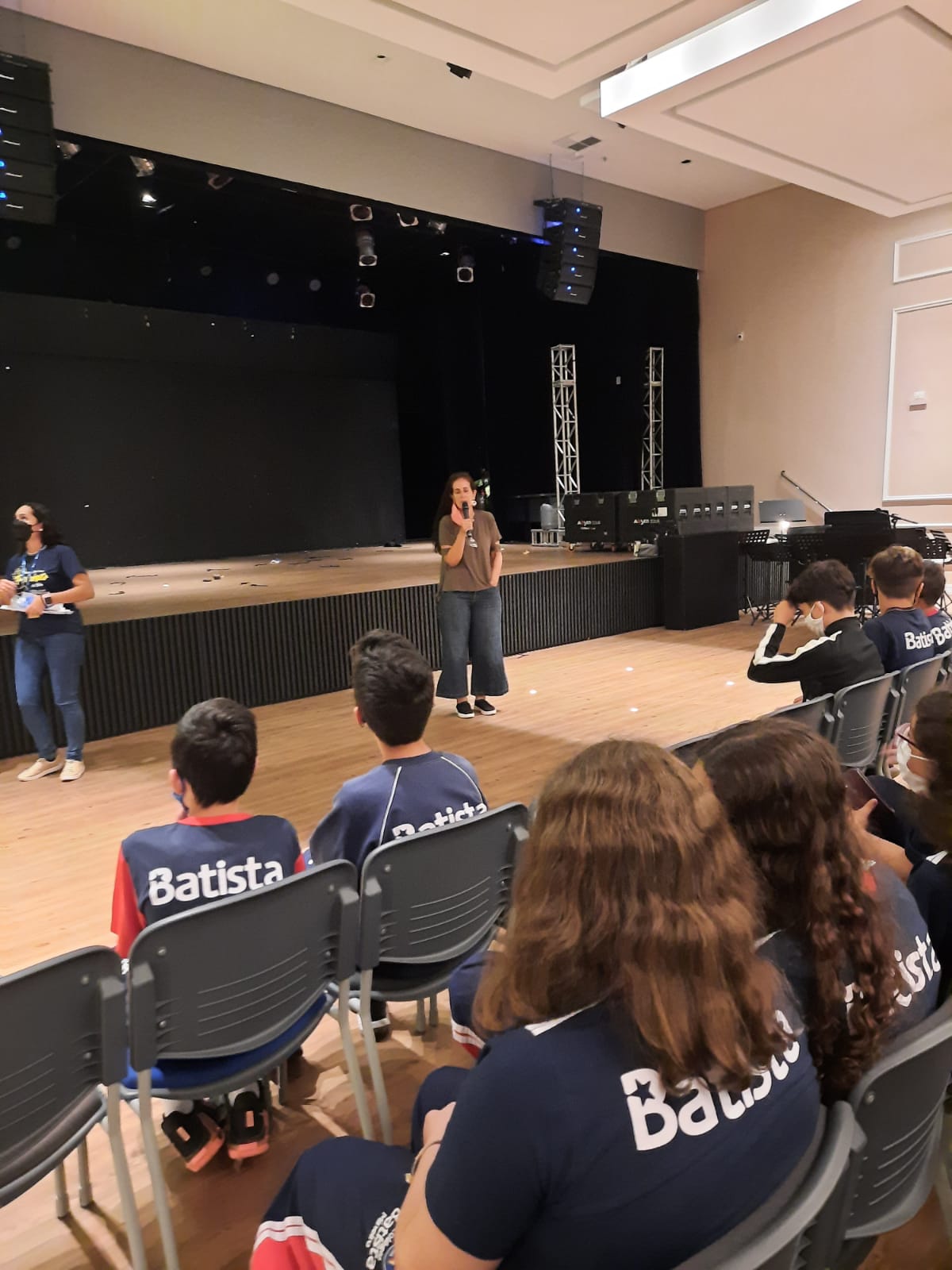 Na última segunda (21), a Comissão Estadual Direito na Escola da OAB/MG promoveu uma palestra no Colégio Batista Mineiro – Unidade Floresta, cujo principal objetivo era orientar os estudantes do 7º ano das Séries Finais a respeito de noções de direitos e deveres, de acordo com a faixa etária. O bate-papo ocorreu no Teatro Maddox, pela manhã, e contou com a presença do professor Lucas Andrade e da presidente da comissão, Denise Torquatto, ex-aluna do Batista.