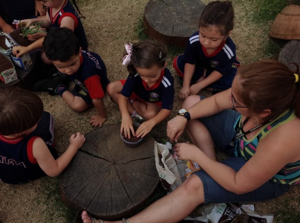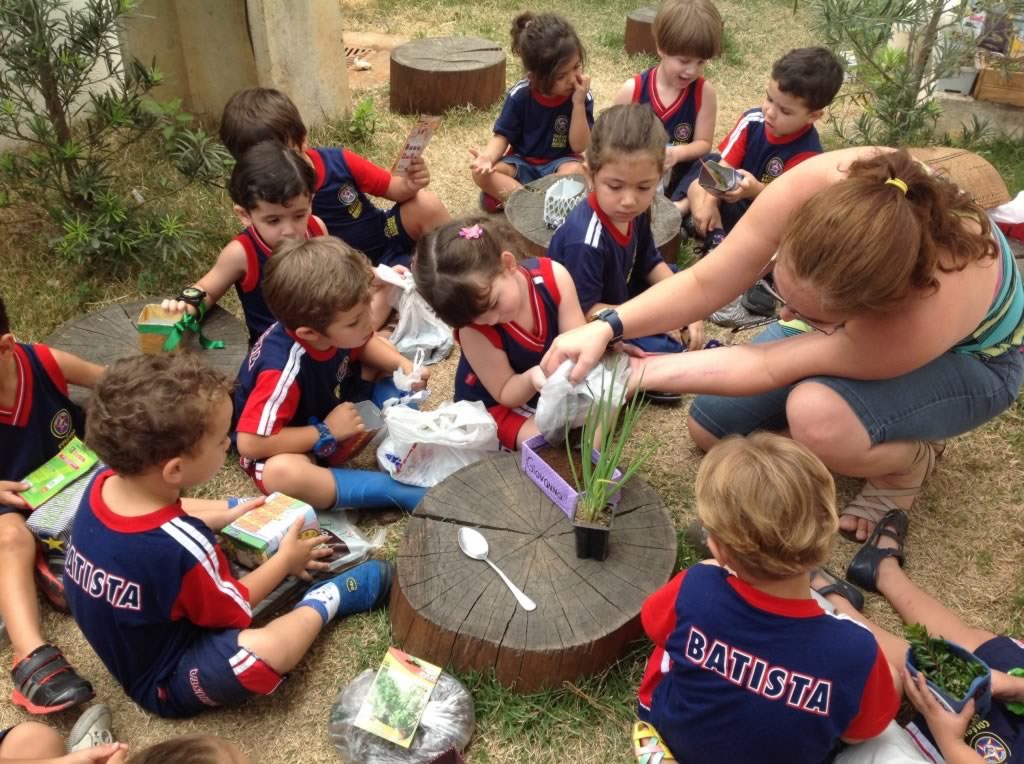 Os alunos experimentaram o plantio de sementes como: tomate cereja, cebolinha, pimentão, salsinha, realizando na escola o passo a passo dessa tarefa que exige cuidado e dedicação.