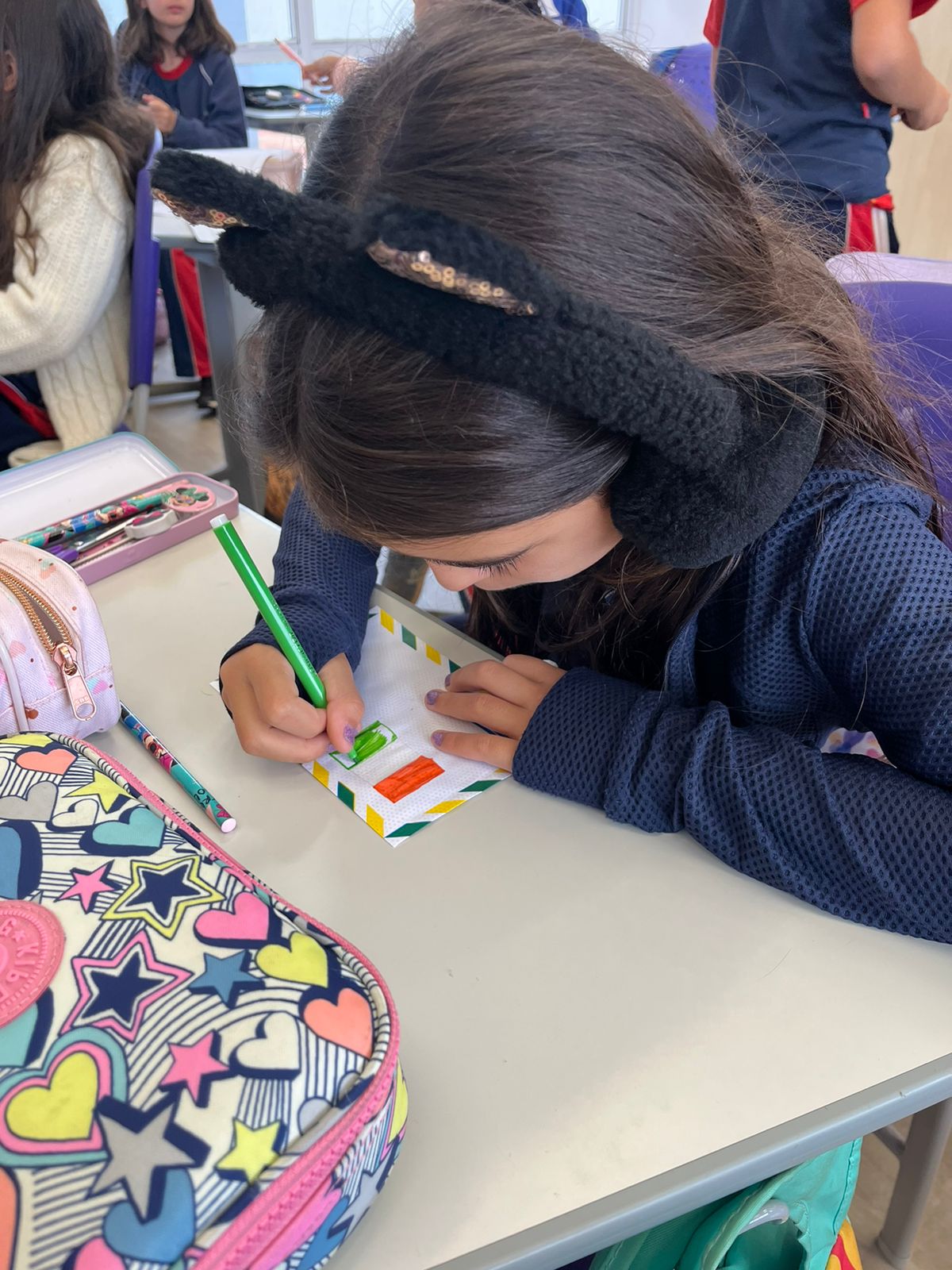 Após a apresentação de Victor, a professora do bilíngue, Gabriela Werneck, introduziu a proposta de trocarem cartas com os amigos italianos de Victor. Os estudantes ficaram empolgados com esse projeto.