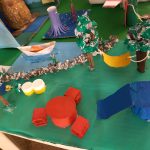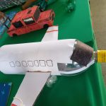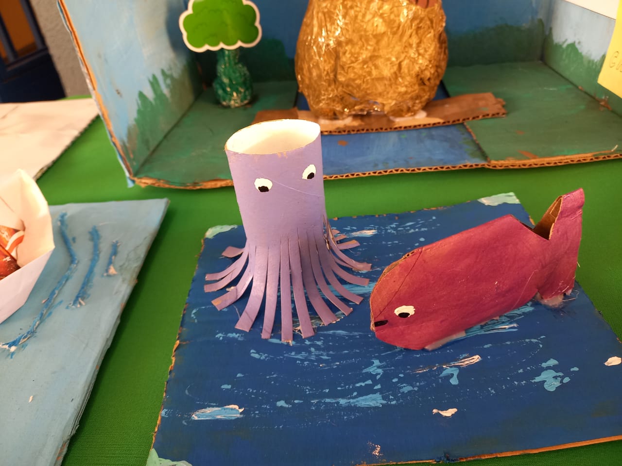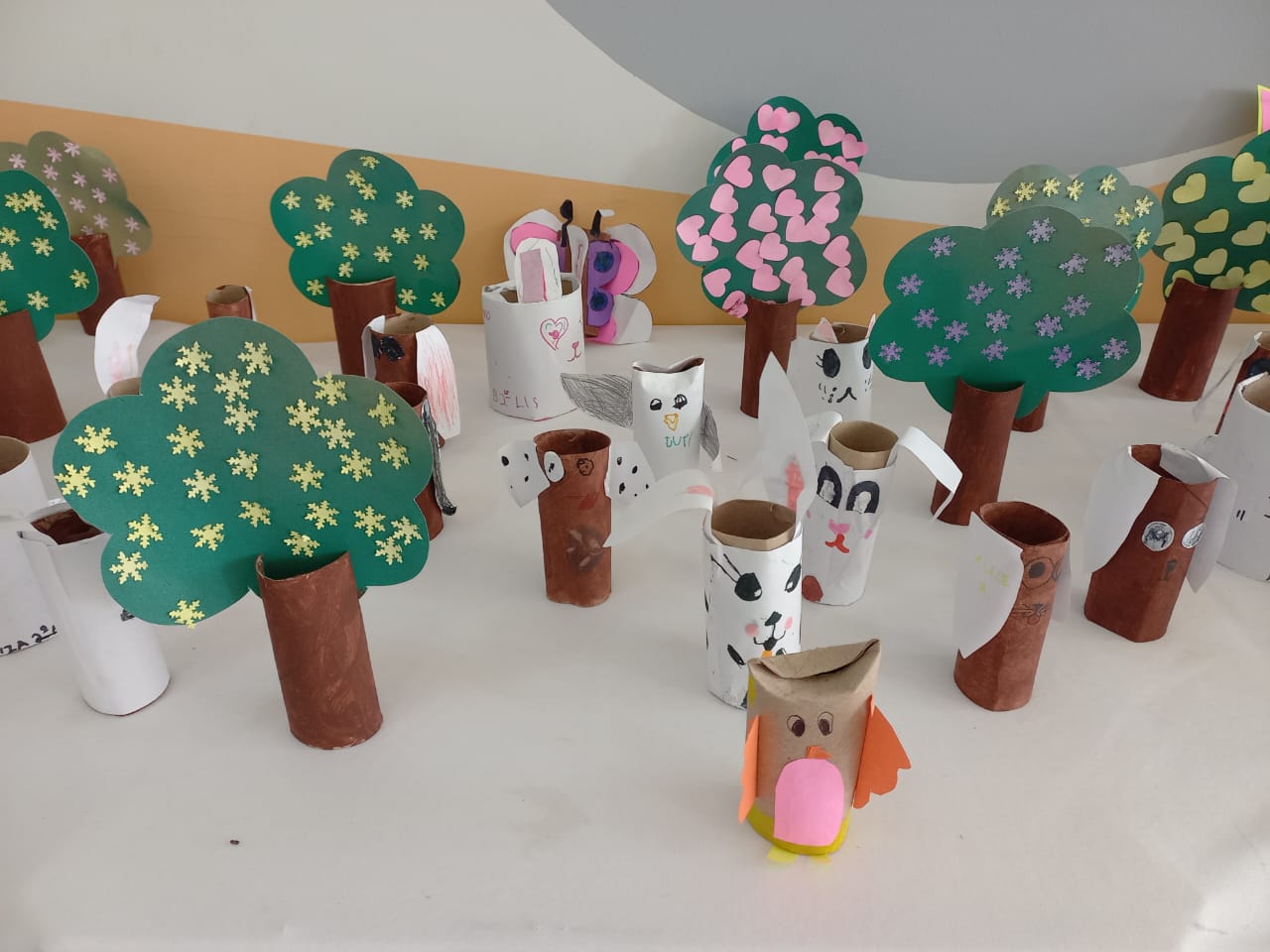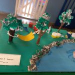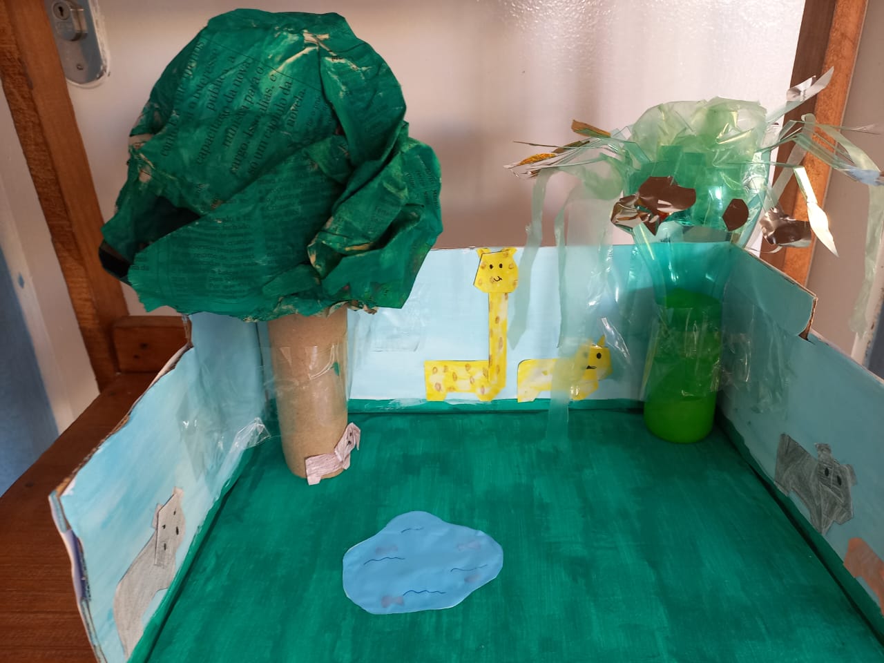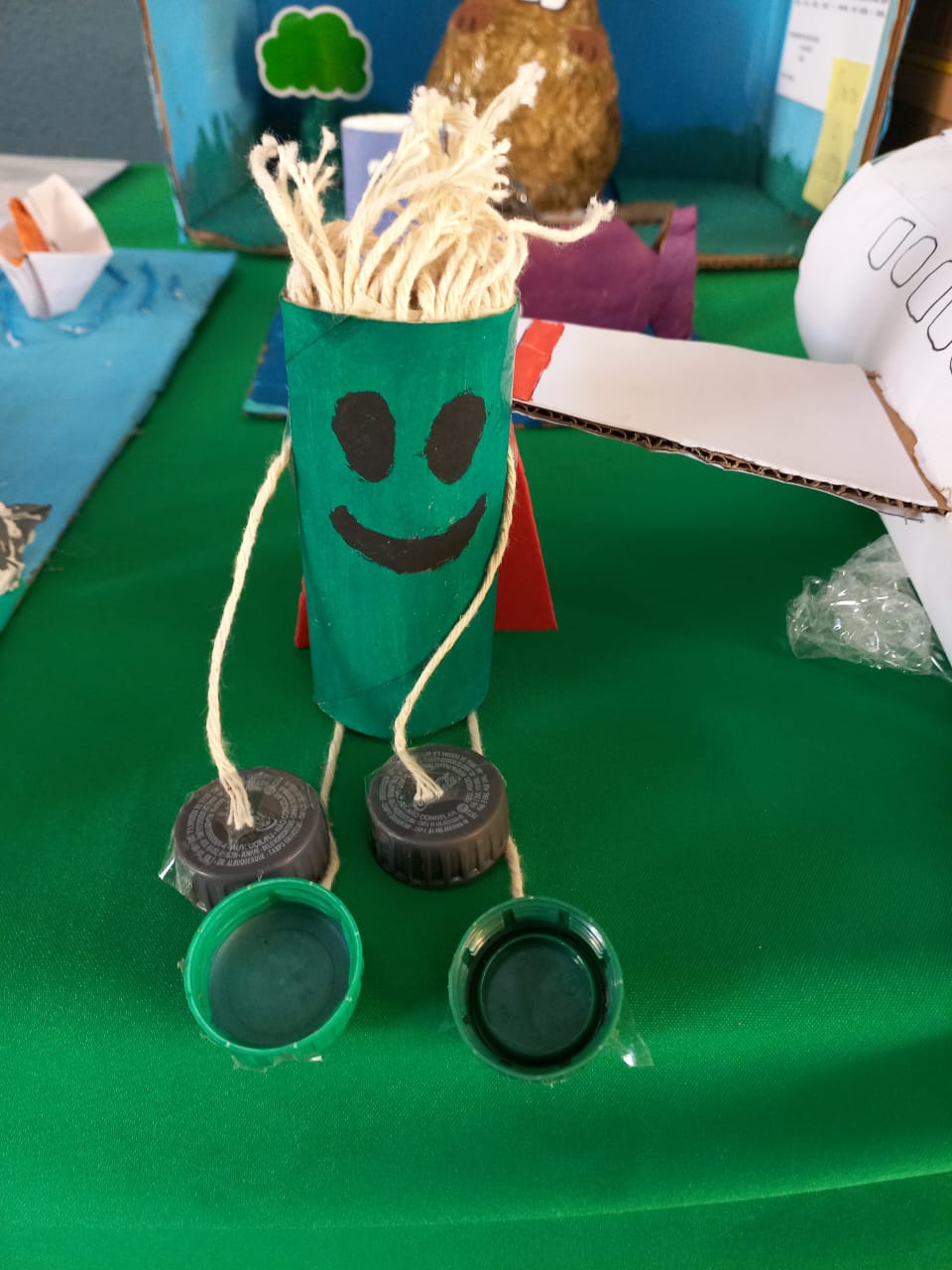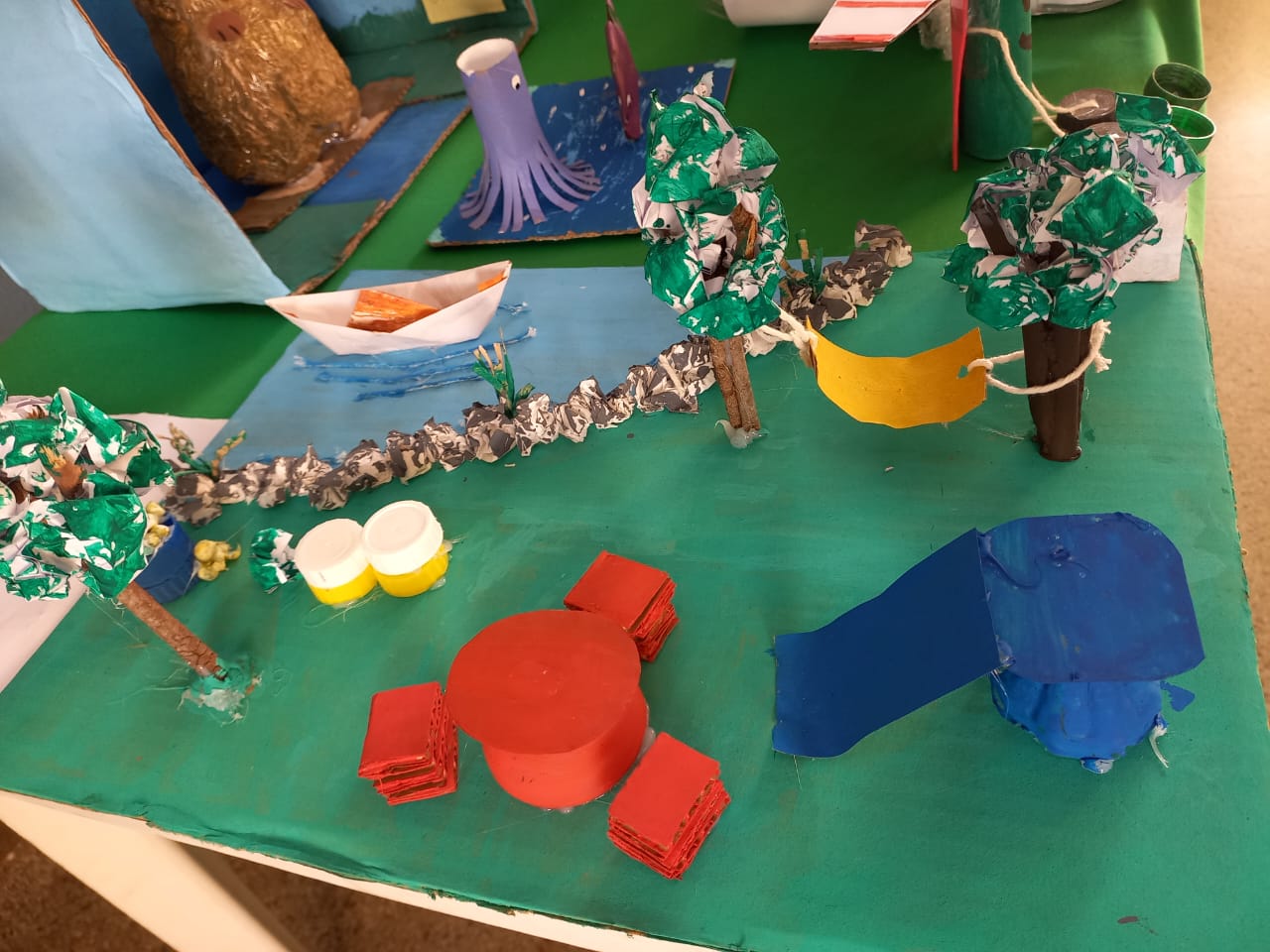 Os estudantes dos Anos Iniciais criaram brinquedos e animais reutilizando materiais descartáveis. Já nos Anos Finais, os estudantes criaram telas, esculturas, carros e animais, tudo isso com materiais reutilizáveis.