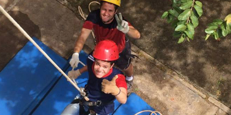 O professor Renato Gonçalves, do Colégio Batista Mineiro (Unidade Uberlândia), organizou uma aula de desafios para as turmas do Ensino Médio. Rapel! É isso mesmo! Com a participação do instrutor Douglas Abrahão, responsável pela agência de Ecoturismo e Turismo de Aventura “Trilhas Interpretativas” os alunos vivenciaram experiências de superação e aventura.
