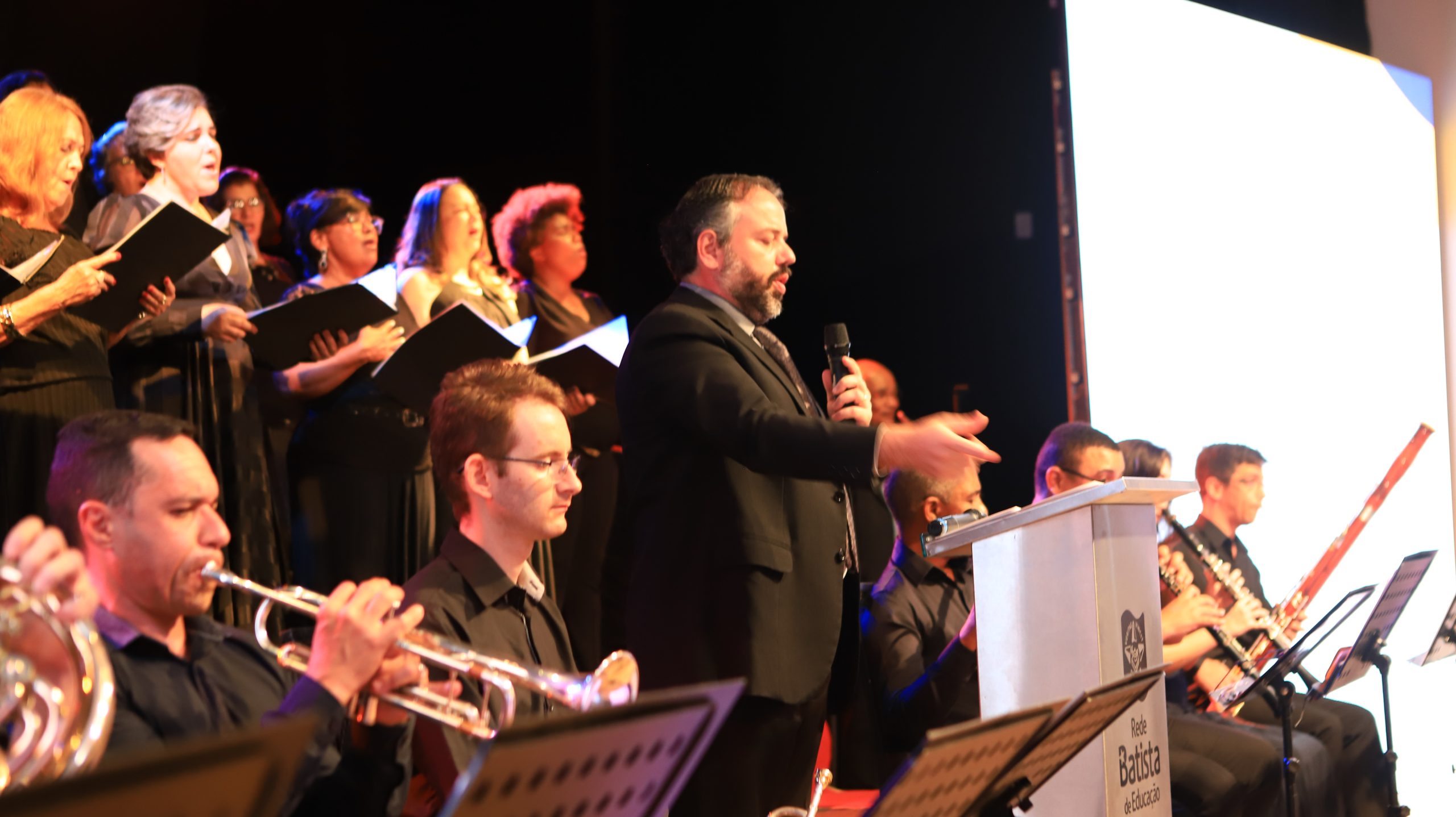 O culto também contou com a apresentação da orquestra e do coral da Escola Batista de Música, sob a regência do maestro César Timóteo.