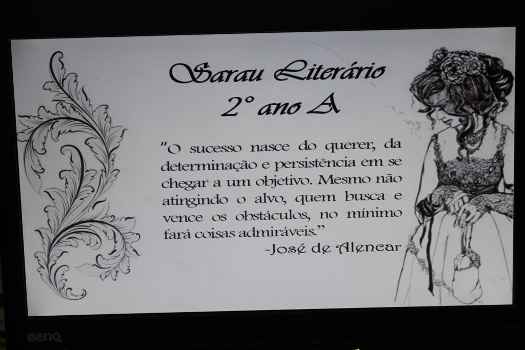 Há mais de 11 anos o Sarau Literário desenvolve uma nova concepção para ensinar literatura. É um momento para a soma de conhecimentos, descobertas e vivências coletivas. Ele permite verificar as múltiplas ideias, opiniões e talentos de cada aluno, sendo possível a observação do quão plausível é o progresso de cada Sarau. A aluna Rafaela Urbanin, 15, sentiu a emoção de viver um pouco no XVIII por meio do estudo sobre os estilos literários. “Estou encantada com os vestidos da época, os costumes, músicas, danças, poesias. O Sarau Literário é uma forma muito criativa de aprender sobre estes estilos e uma oportunidade de vivenciar essa época”.