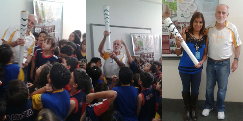 Antônio Alves da Silva é diretor presidente da ONG Associação dos Amigos e Usuários de Medicamentos (Assaumex), e em reconhecimento pelo seu trabalho foi escolhido para conduzir o fogo olímpico em BH. O sr. Antônio esteve no Colégio Batista para contar aos alunos do 2º ano um pouco da emoção de carregar a chama olímpica. “Um sentimento único, sem palavras para explicar a adrenalina que senti ao tocar na tocha e ver todas as pessoas ao meu lado na torcida. É uma emoção diferente por saber que esse será um momento único em minha vida”.