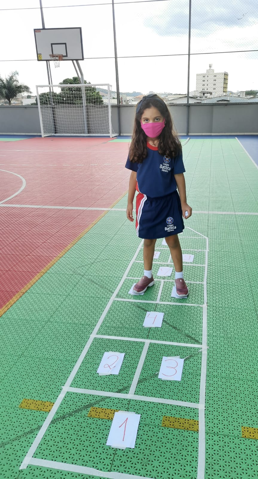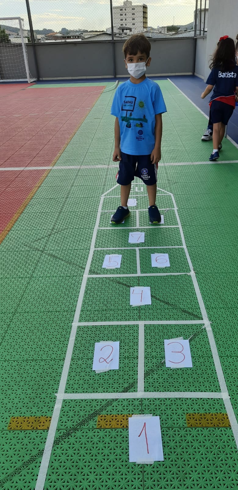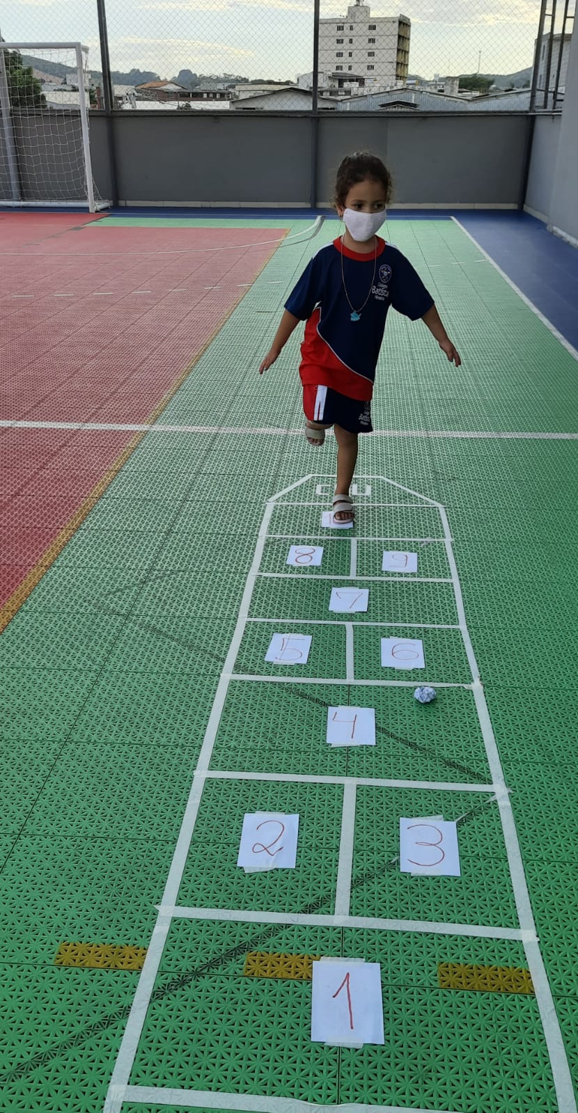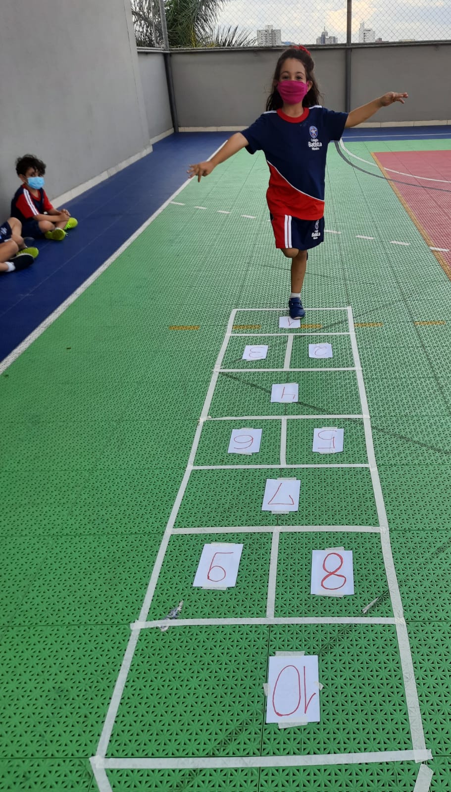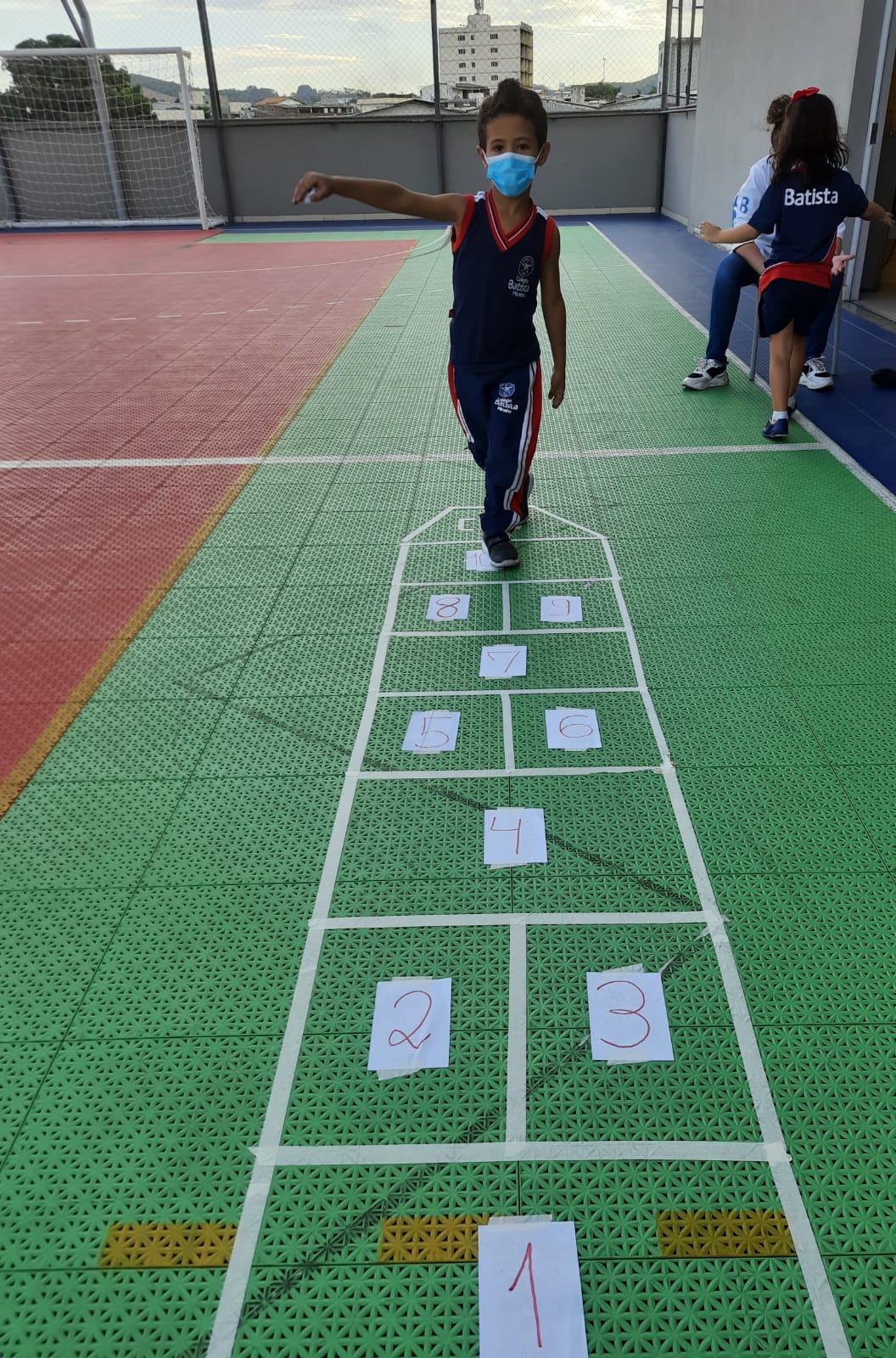 Em cada pulo, a criança pode desenvolver equilíbrio, agilidade, força e concentração, além de estimular a identificação de numerais relacionados com a quantidade.