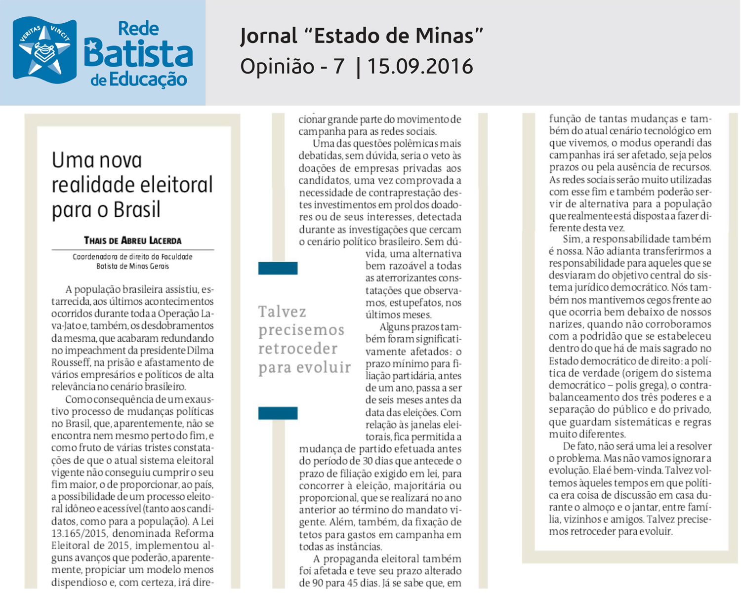 Uma nova realidade eleitoral para o Brasil (jornal ‘Estado de Minas’)